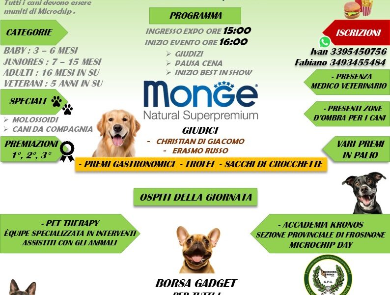 Uno degli aspetti più attesi della giornata è la microchippatura gratuita, disponibile dalle ore 9:00 alle 13:00 grazie alla presenza dell’Accademia Kronos – Sezione Provinciale di Frosinone. Un’occasione importante per i proprietari che non hanno ancora provveduto a registrare il proprio cane all’anagrafe canina.
