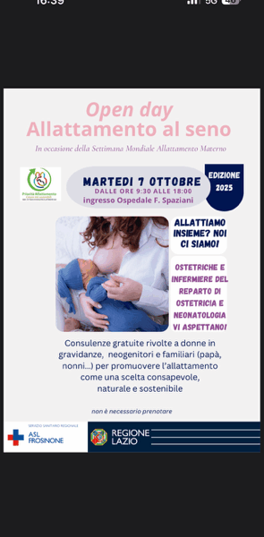 Per aderire non è necessaria una prenotazione: basta raggiungere martedì 7 ottobre l’Ospedale “Spaziani”. L’iniziativa rientra all’interno della Settimana Mondiale dell’allattamento materno promossa da WABA (World Alliance for Breastfeeding Action), con il patrocinio di UNICEF, OMS e Ministero della Salute.