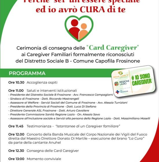 A Frosinone la consegna della Card del Caregiver ai caregiver familiari dei 23 Comuni del…