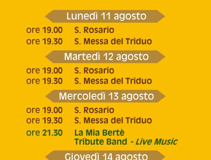 Da mercoledì 13 e venerdì 15 agosto si svolgeranno i festeggiamenti in onore di Maria…