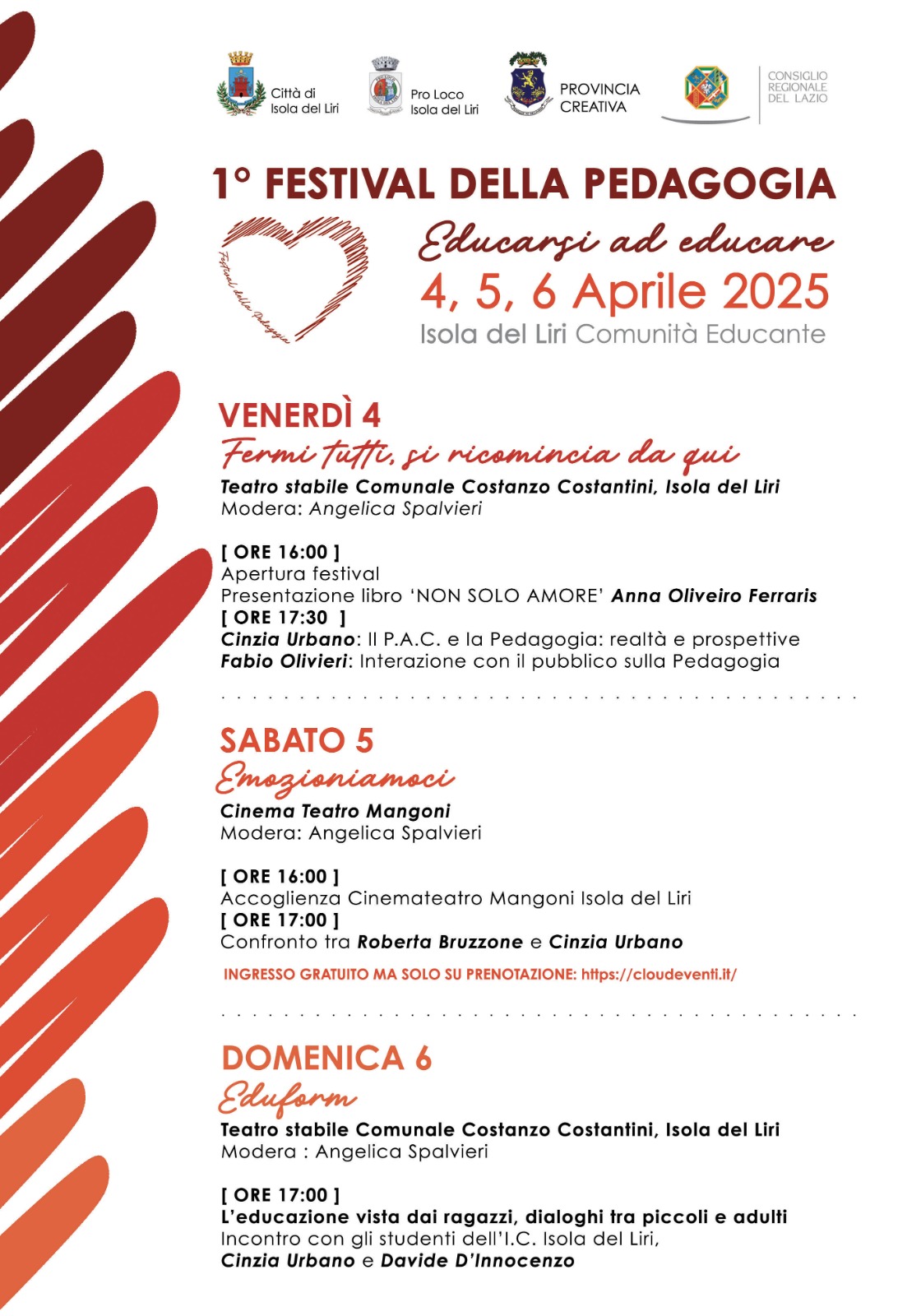 Cresce l’attesa per la I edizione del Festival della Pedagogia “Educarsi ad Educare” a Isola del Liri…