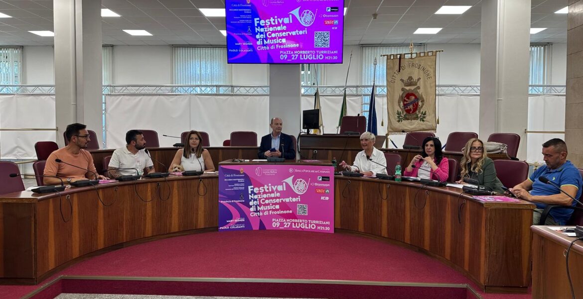 Tutto pronto per la nuova edizione del Festival nazionale dei Conservatori di Musica – Città di Frosinone in partenza mercoledì 9 luglio alle 21 in piazza Turriziani. Il Festival è stato presentato dal Sindaco di Frosinone, Riccardo Mastrangeli, con gli assessori Rossella Testa (centro storico) e Simona Geralico (cultura e turismo) e il consigliere comunale Dino Iannarilli.