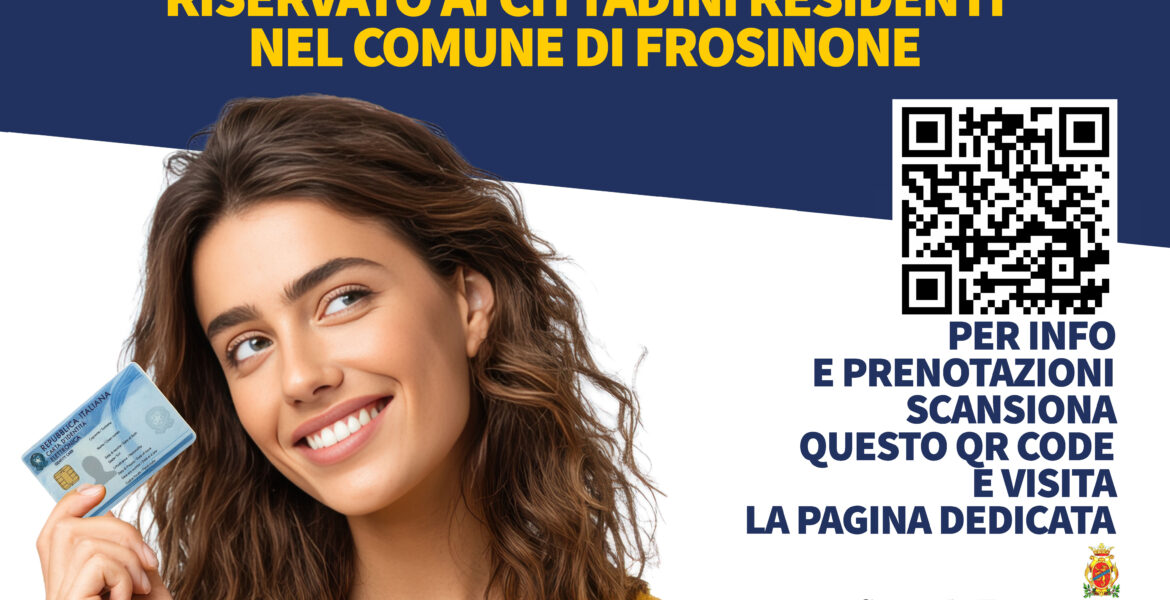 L’amministrazione comunale, su indirizzo del Sindaco Riccardo Mastrangeli, di concerto con l’assessore all’innovazione tecnologica Maria Teresa Spaziani Testa e con il consigliere delegato Sergio Crescenzi, ha istituito, per sabato 28 febbraio dalle 9 alle 18, presso la sede comunale di piazza VI dicembre, l’Open Day per il rinnovo della carta di identità elettronica. L’iniziativa, che fa seguito agli open day di dicembre e gennaio, è riservata esclusivamente ai cittadini residenti nel Comune di Frosinone. Le prenotazioni saranno aperte giovedì 26 alle 11. La partecipazione è possibile solo tramite prenotazione online sul sito istituzionale dell’Ente, al link https://servizionlinepa.it/frosinone/openday/, fino a esaurimento posti. Dall’ufficio anagrafe fanno sapere che, in aggiunta alle prenotazioni online, sarà erogato dal tagliacode in presenza un numero limitato e ad esaurimento di ticket “lettera H” per la mattina e poi di nuovo per il pomeriggio, con una postazione dedicata, fino ad esaurimento dei ticket. La prenotazione è nominativa e consente di prenotare una sola persona per volta (anche nel caso di minorenni); il costo della CIE è di 22,50 euro. Sarà necessario portare con sé fototessera, codice fiscale, tessera sanitaria, carta di identità scaduta o prossima alla scadenza o denuncia di furto o smarrimento; in caso di minori di anni 18, è necessaria la presenza di entrambi i genitori (muniti di apposito documento di identità) o di un genitore con apposita delega e copia di un documento di identità del genitore assente. Per informazioni, è possibile chiamare lo 0775/2656548 venerdì 27 febbraio dalle 9 alle 13.