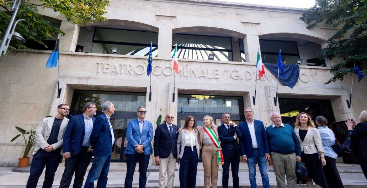 La prima cittadina, poco prima che l’insegna fosse scoperta, ha voluto ringraziare gli sponsor, il progettista Catani, la responsabile del teatro Elena Lusena, la dirigente del dipartimento Cultura Manuela Zuffranieri, gli uffici e tutto il personale impegnato per la gestione del D’Annunzio e i media partner della stagione teatrale 2025/2026.