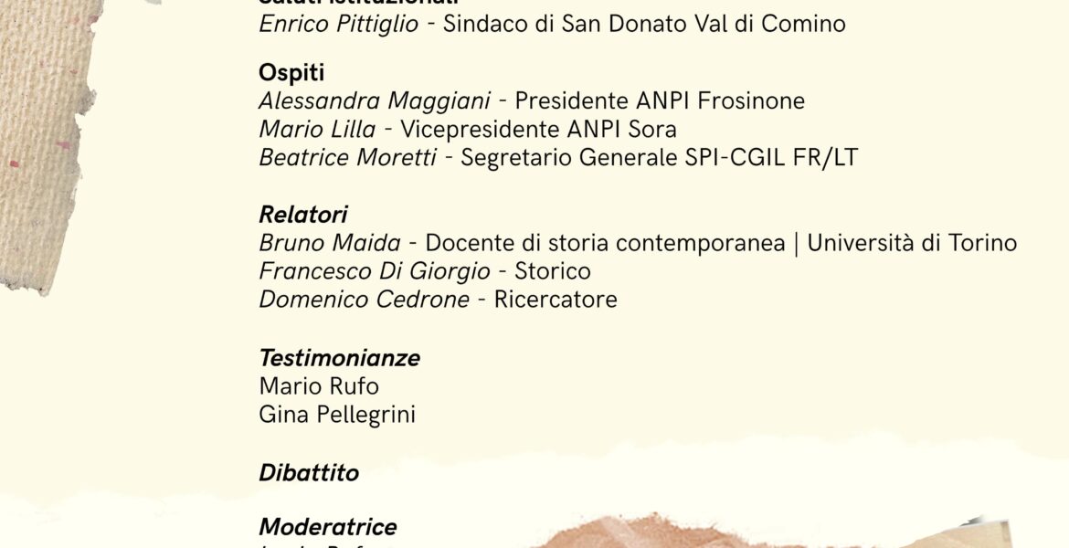 L’evento è promosso dal Comune di San Donato Val di Comino e dalla Pro Loco, in collaborazione con ANPI, CGIL SPI Frosinone Latina e diverse realtà associative del territorio.
