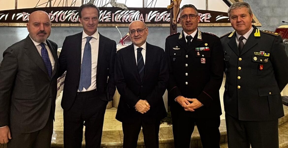 Questa mattina, presso la chiesa di San Paolo Apostolo nel quartiere Cavoni, a Frosinone, si è svolta una celebrazione solenne, in occasione delle imminenti festività natalizie, officiata da S.E. Mons. Santo Marcianò, Vescovo delle diocesi unite di Frosinone-Veroli-Ferentino e Anagni-Alatri, alla presenza delle forze dell’ordine, della Direzione Strategica della Asl di Frosinone — il Direttore Generale Arturo Cavaliere, la Direttrice Sanitaria Maria Giovanna Colella e il Direttore Amministrativo Giovannino Rossi — insieme al Prefetto di Frosinone, dott. Ernesto Liguori, e al Questore, dott. Stanislao Caruso.