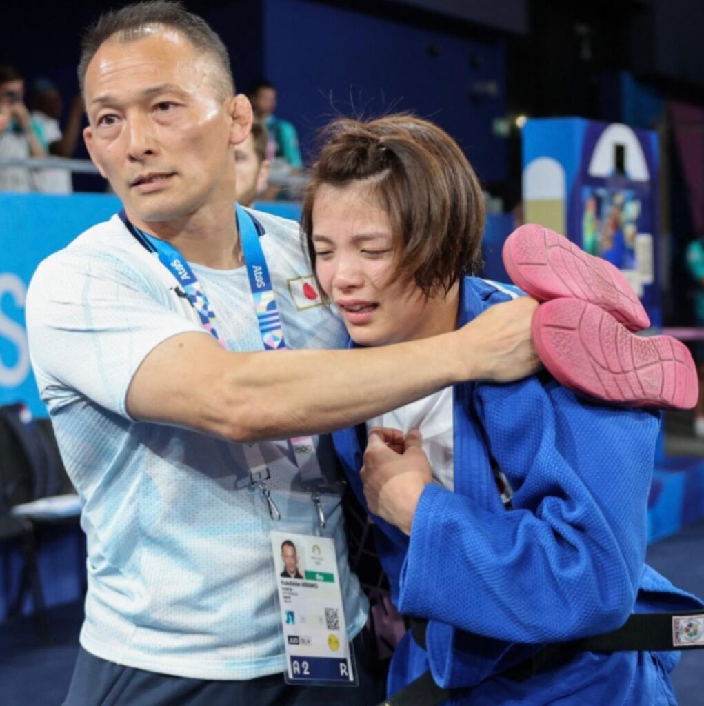 Uta ci mette un po’ a realizzare che stavolta non ha vinto. Barcolla per il saluto all’avversaria, fa fatica ad uscire dal tatami e sembra non possedere più capacità deambulatorie. È una disperazione che ricorda il Maracanà offeso da Ghiggia ai mondiali del 50. Piange, Abe, piange di rabbia e di frustrazione, piange tra le braccia del suo tecnico chiedendosi il perché.
