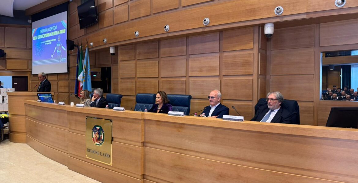 «Desidero rivolgere un sentito ringraziamento ai partner che hanno permesso di portare a termine questo corso, l’Università di Cassino e del Lazio Meridionale e le scuole di volo che hanno contribuito a formare i nostri agenti. Questo corso è un esempio positivo di come la collaborazione tra Pubblica amministrazione, mondo accademico e privati può portare un valore aggiunto per la collettività. Oggi la sicurezza dei territori passa per le nuove tecnologie. Continueremo a lavorare in questa direzione con il progetto Lazio Sentinel 2030 grazie al quale doteremo i territori di strumenti di ultima generazione – telecamere intelligenti, colonnine SOS, sistemi di gestione dei flussi video con IA e altre innovazioni – per aiutare i nostri agenti a garantire un servizio sempre più efficiente a tutela dei cittadini», conclude l’assessore Luisa Regimenti.