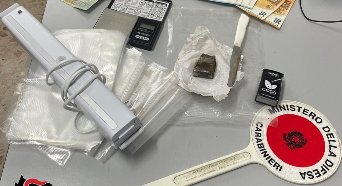 Ciò ha spinto i militari ad approfondire gli accertamenti. La successiva perquisizione personale e veicolare ha confermato i sospetti: sono stati trovati e sequestrati più di 30 grammi di hashish, un bilancino di precisione, un coltello intriso di tracce di stupefacente e la somma in contanti di 245 euro, ritenuta probabile provento dell’attività illecita. Le operazioni sono state poi estese anche ai domicili dei due. In un’abitazione è stato rinvenuto ulteriore materiale idoneo al confezionamento delle dosi, confermando così il quadro indiziario. Tutto il materiale rinvenuto, la droga e il denaro sono stati sottoposti a sequestro.