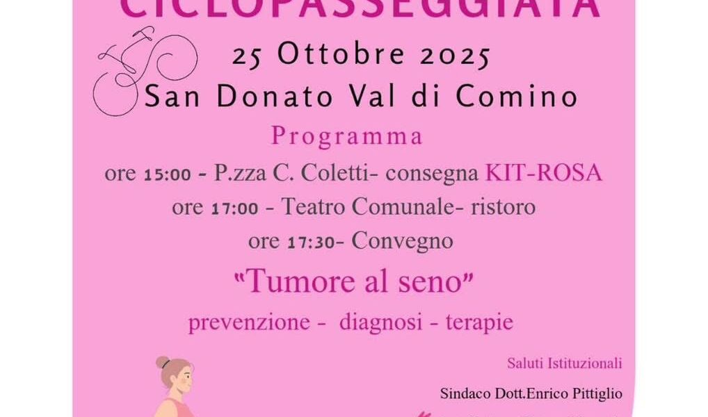 “Ottobre Rosa – ha spiegato il sindaco Enrico Pittiglio – è un momento di riflessione e di impegno collettivo. Con questa iniziativa vogliamo unire sport, salute e solidarietà per ricordare a tutti quanto sia fondamentale la prevenzione. San Donato Val di Comino è una comunità che sa fare squadra e che non resta indifferente davanti a temi così importanti per la vita delle persone. Ogni pedalata sarà un gesto di speranza”.