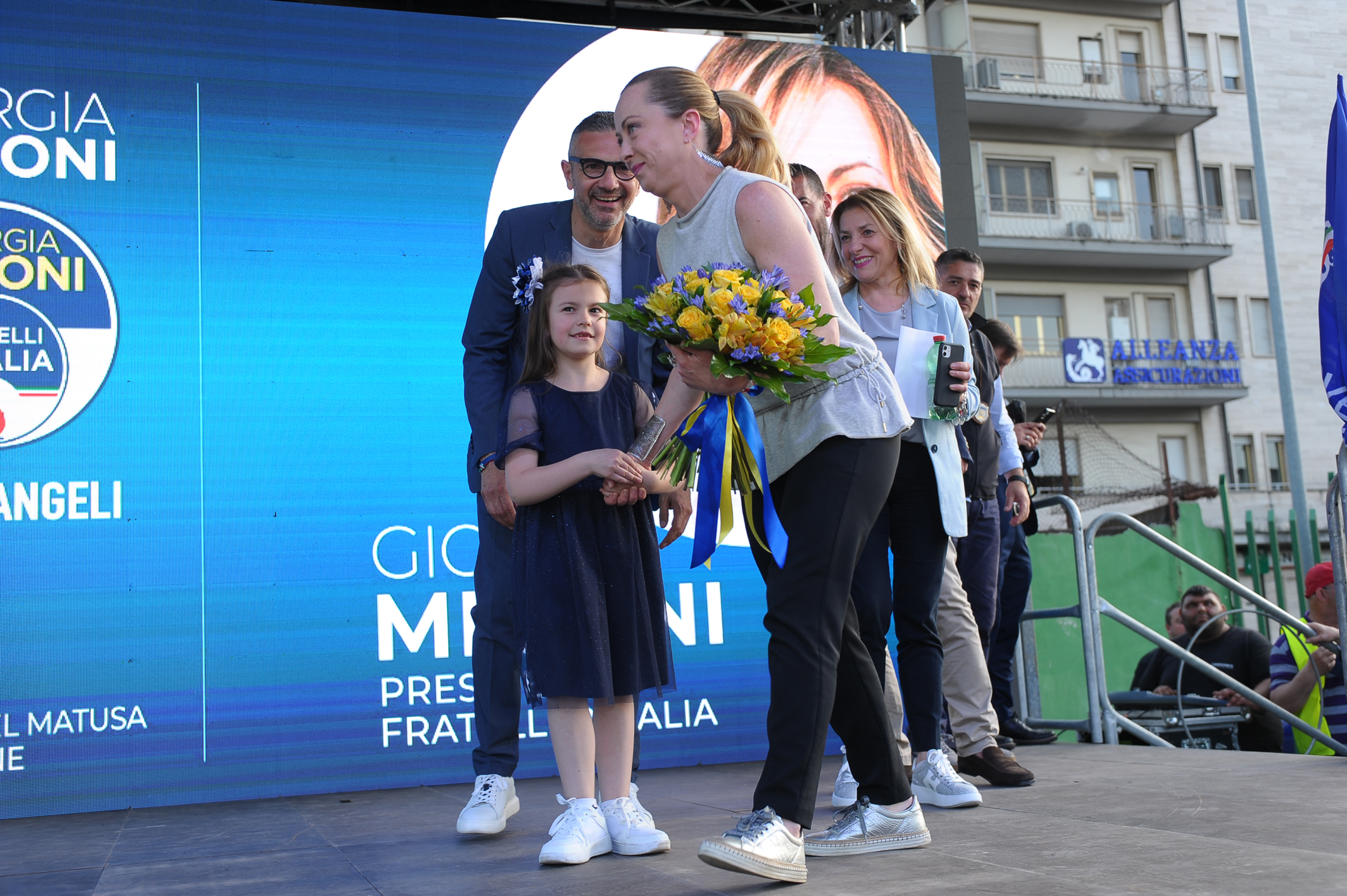 Giorgia Meloni è stata accolta sul palco da leader provinciale di Fratelli d’Italia, il senatore Massimo Ruspandini, dal segretario cittadino del capoluogo Fabio Tagliaferri e dal candidato sindaco Riccardo Mastrangeli. L’immagine parlava da sola: pieno e incondizionato sostegno a Mastrangeli nella convinzione del ruolo fondamentale che Fratelli d’Italia avrà nella prossima Amministrazione. Totale legittimazione della classe dirigente provinciale del partito. La manifestazione di ieri sera è stata una ulteriore prova di forza e di autorevolezza di Ruspandini. Fabio Tagliaferri ha presentato uno a uno i candidati al consiglio comunale: Paolo Fanelli, Fabio Bracaglia, Alessia Savo, Christian Bellincampi, Marco Ferrara, Sergio Crescenzi, Gerardo Zirizzotti. Per tutti ha avuto una frase caratterizzante. Non è semplicemente propaganda, è condivisione di un progetto che è diventato “virale”.